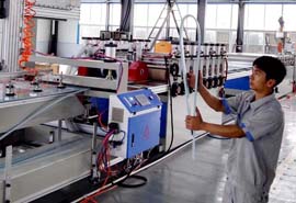 公司致力于PVC結(jié)皮發(fā)泡板設(shè)備的研發(fā)制造,具備多個(gè)系列多種型號的設(shè)備供不同用戶選擇。